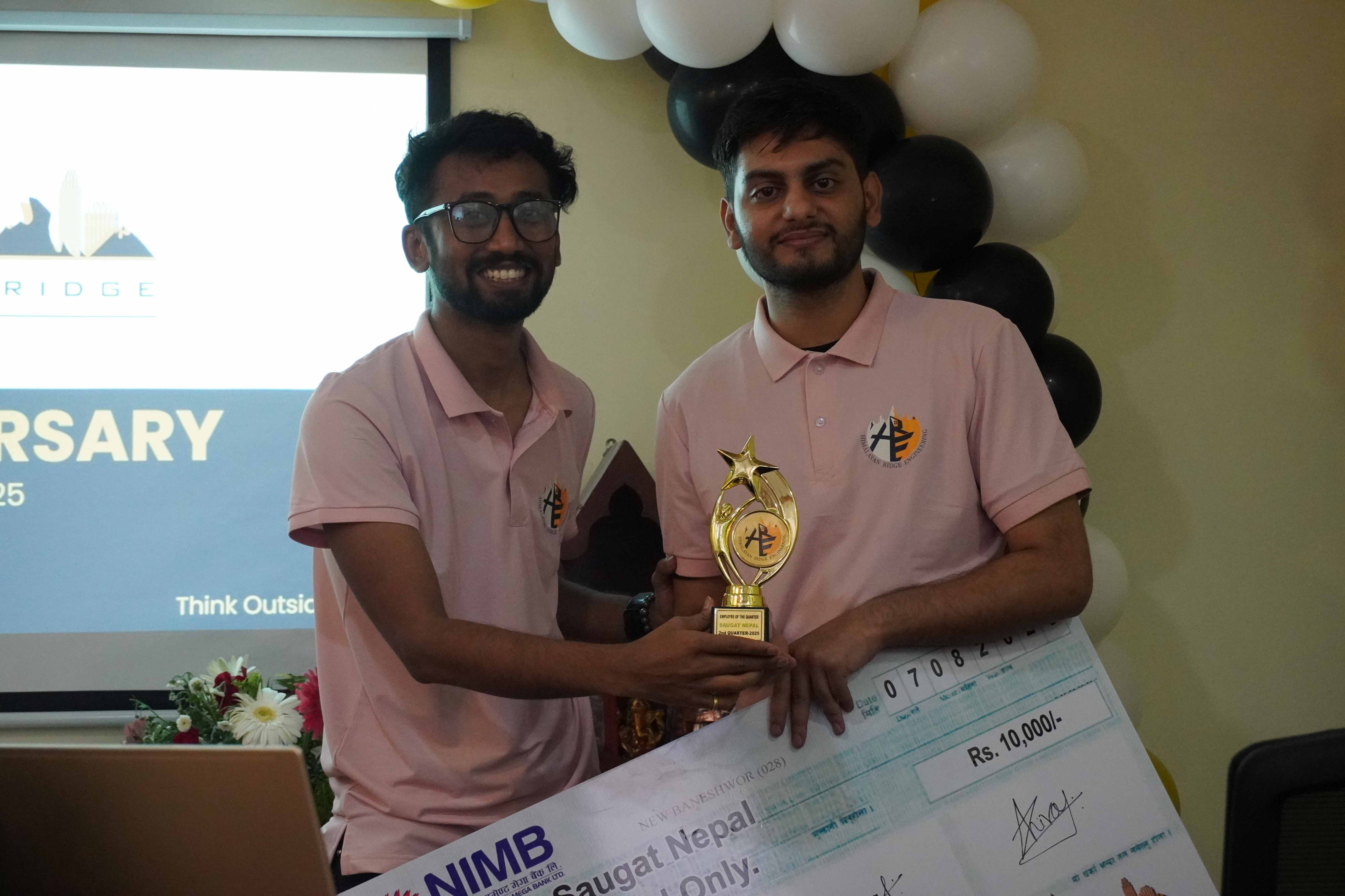 We reflected on six years of HRE’s journey—how we began, how we partnered with Tamarack Grove Engineering, and how far we have come as a family. We also recognized our people, for it is our employees who embody our vision. This Quarter (2nd Quarter, 2025), the Employee of the Quarter Award was presented to Mr. Saugat Nepal, a recognition of dedication and values lived in action.